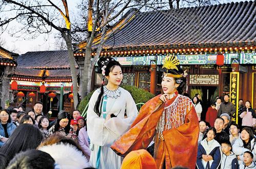 2月17日,游客在正定荣国府景区观看“一梦入红楼”夜游演出。(本报资料片)本报记者 史晟全摄